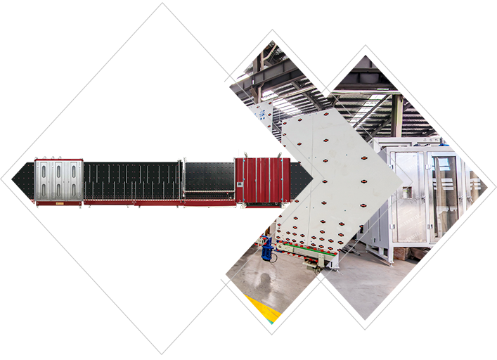 玻璃合片時平壓機前后箱機械手杠桿式托料,(機械式硬限位+活動板吸盤吸附)確保自動合片時玻璃永不錯位。清洗箱、風干箱、風刀等全不銹鋼制作 外形美觀大方,不易銹蝕。